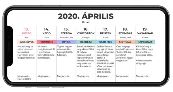 A posztok, akárcsak a Te edzésterveid is, komoly social media üzleti terv alapján vannak felépítve és egymáshoz kapcsolva. Tanultunk a külföldi konkurens naptárak hibáiból, így neked már nem kell kockáztatnod!